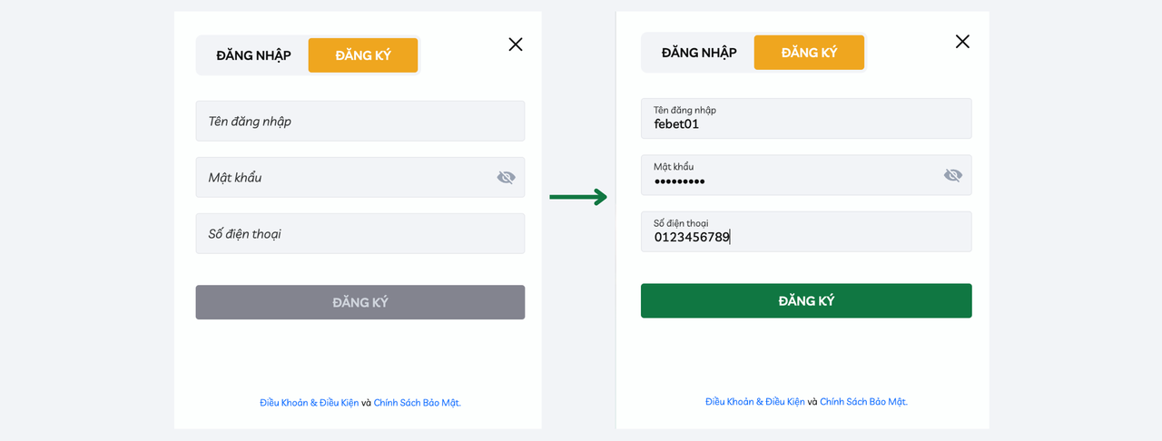 Bước 1: Đăng Ký Tài Khoản FEBET