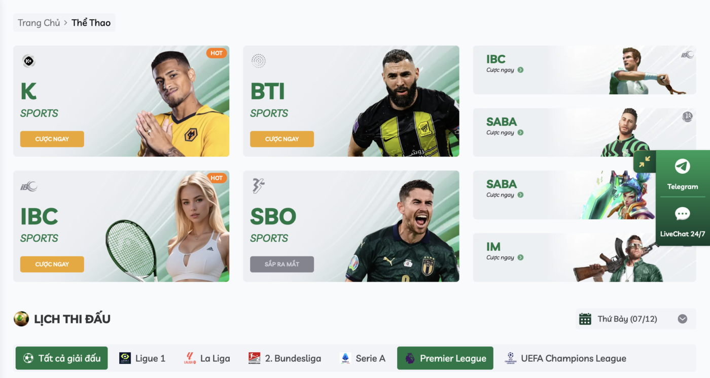 Là nhà cái bóng đá hàng đầu tại Việt Nam và khu vực Châu Á, chúng tôi mang lại cơ hội cá cược vượt trội với tỷ lệ thể thao cạnh tranh và bộ sưu tập trò chơi sòng bạc phong phú, hấp dẫn.